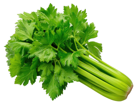 Vibrant fresh green bunch of celery stalks and leaves isolated on background. healthy raw vegetable food for nutrition, diet, and cooking. crisp, appealing sight