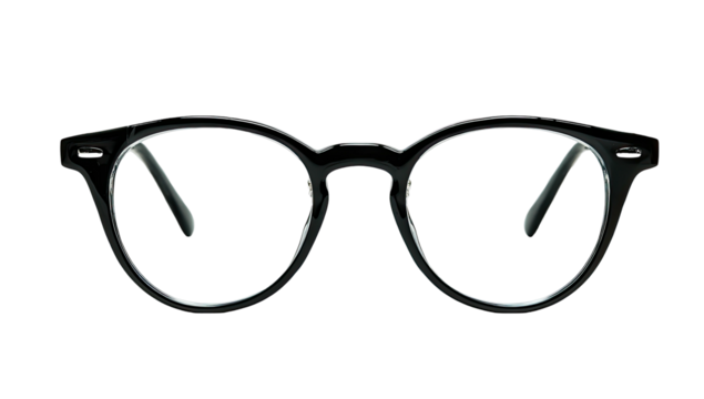 Photo of black framed eyeglasses isolated on transparent background