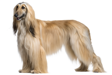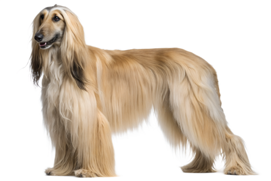 Afghan hound dog isolated, elegant sighthound with long silky coat, regal pose
