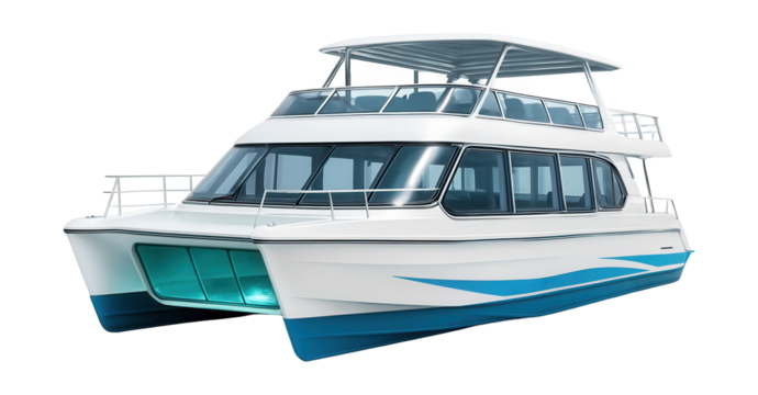Tourist catamaran with glass-bottom and panoramic viewing areas.