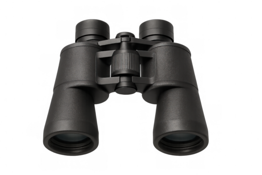 Man exploring outdoor sightseeing with binoculars on transparent background
