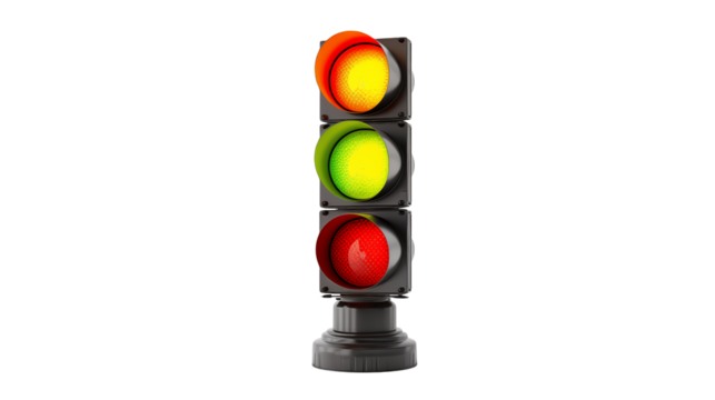 Traffic Light Signal: A vibrant display of a traffic light, showcasing the universal signaling system used to control traffic flow. The red, yellow, and green lights represent stop, caution.