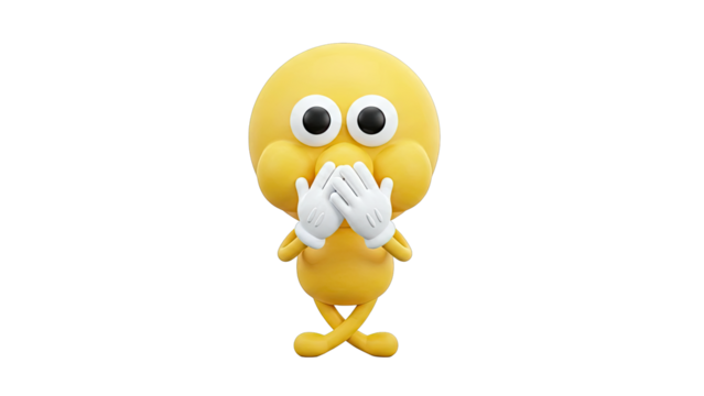3D Render of a Speechless Yellow Emoji Covering Its Mouth With Hand on Transparent Background, PNG