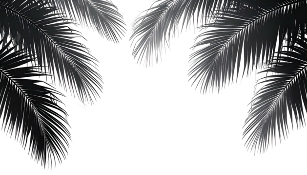 Dark image featuring stylized palm fronds in shades of gray, framing a black background