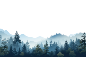 forest in the fog panorama view isolated on white or transparent png
