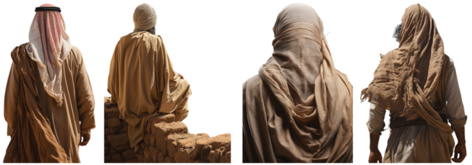 several Arab men in traditional clothes on a transparent background, Generative AI