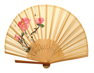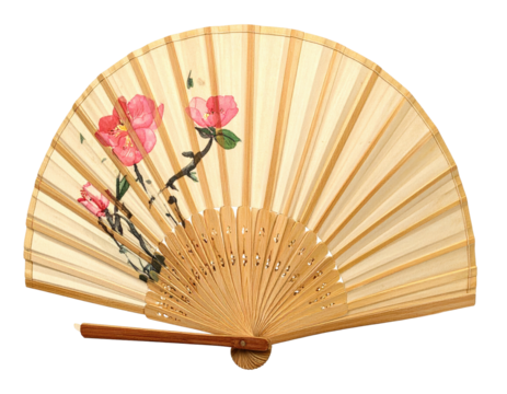 Isolated Image of Traditional Chinese Folding Fan with Floral Design