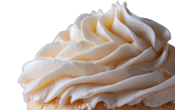 Appetizing vanilla cupcake with silky frosting swirl captured in close detail food imagery isolated on transparent background PNG