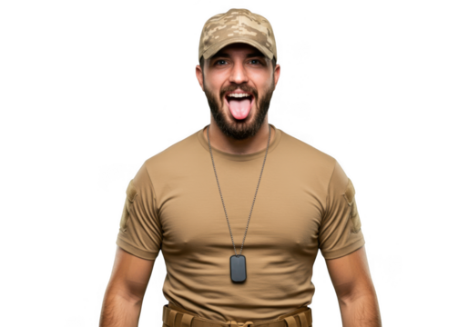 Woman sticking tongue out with playful expression on transparent background