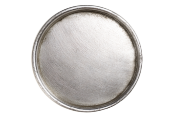 Distressed stainless steel plaque with a brush silver metal texture and screws, png file cut out and isolated on a transparent background, signage stock photo image