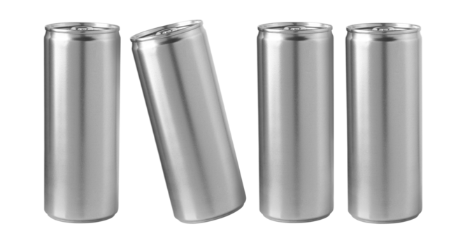 Variety beverage can top bottom side view mockup cold drink aluminum packaging soda refreshment sealed isolated on transparent background, png file