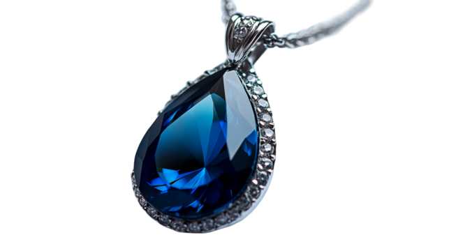 Teardrop pendant with gemstones and silver chain, cut out transparent