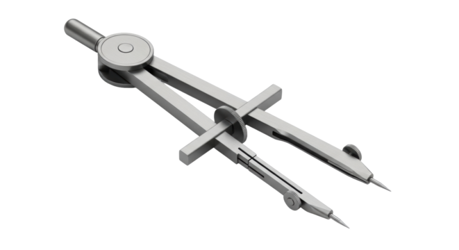 Metallic compass resting on clear surface, highlighting precision engineering for technical drawing and geometric mapping