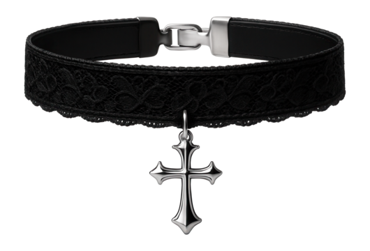 Gothic cross choker with black lace and a silver cross charm