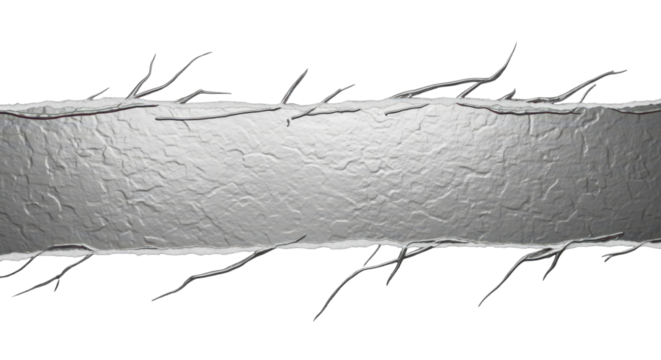 Close up of a silver chain link fence top rail with interwoven loops isolated on a transparent background