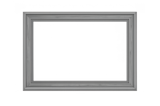 Rectangular gray wooden frame border design element with textured silver finish on transparent background
