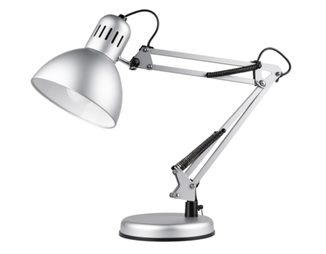 Adjustable Modern Office Desk Lamp – Silver Finish – Isolated on Transparent Background PNG