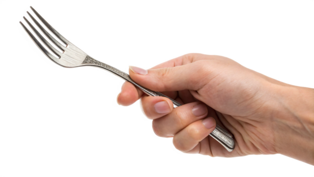 A shiny silver fork resting on a bright white background inviting culinary creativity