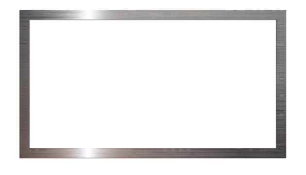 Isolated flat screen television with a black screen and silver frame on a black background view