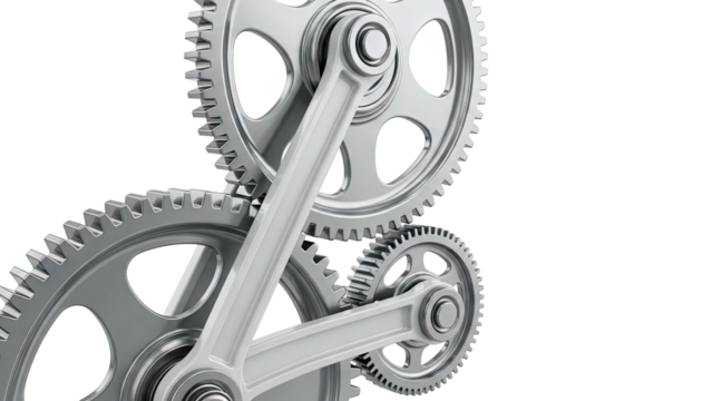 Silver gears on transparent background symbolizing connection
