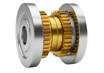 Interlocking golden and silver gears symbolize mechanical innovation and business collaboration, ideal for corporate presentations and engineering industry marketing materials.
