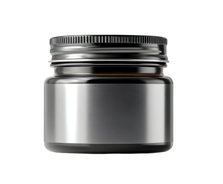 Black Jar Product Illustration With Silver Label On Isolated Transparent Background