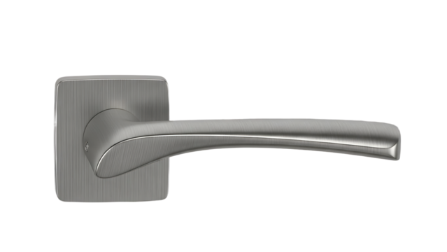 Modern brushed metal door handle contemporary lever design for interior doors isolated on white background