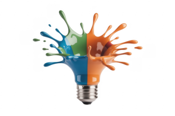 Colorful Light Bulb with Paint Splash idea isolated on a transparent background