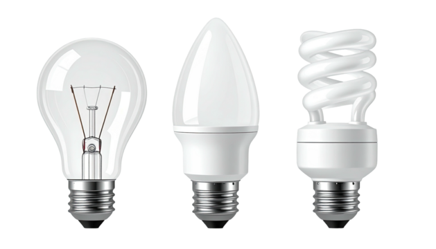 Collection of electric light bulbs with different shapes and technologies isolated against black