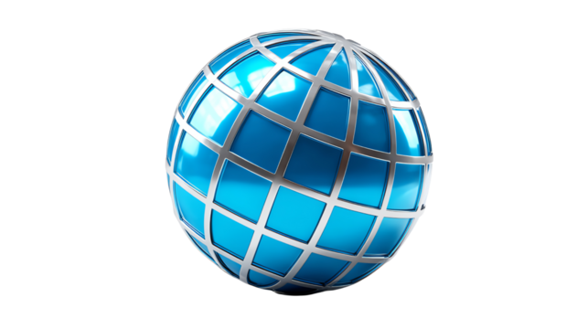 Global Connectivity: A lustrous, azure globe shimmers with a network of silver lines, representing worldwide communication and interconnectedness. A symbol of unity and global reach.