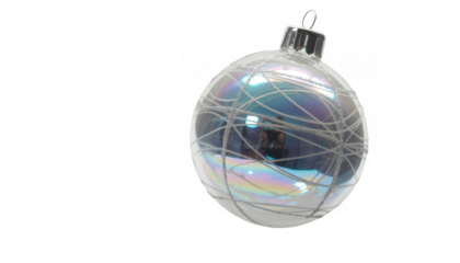 Silver color ball with red dots and sparkling silver lines designs and a hook on top for decoration of charismas tree and house