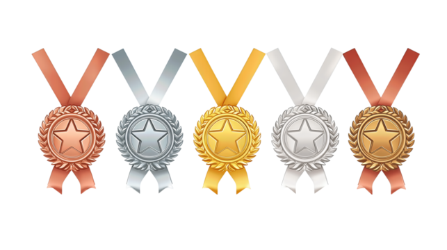 set of medals cutout, silver medal, bronze medal, achievement, award, prize, victory, competition, sports medals, recognition, winner, honor