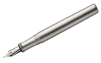 Elegant silver fountain pen with nib exposed, isolated on transparent background