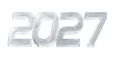 Shiny silver numbers 2026 isolated on a transparent background