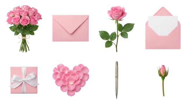 Open black leather planner, blank page, silver pen, white business cards on seamless transparent background, 45-degree, no shadows, minimalist professional stationery concept