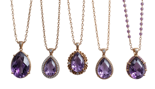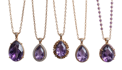 Elegant and luxurious amethyst pendant necklaces displayed png
