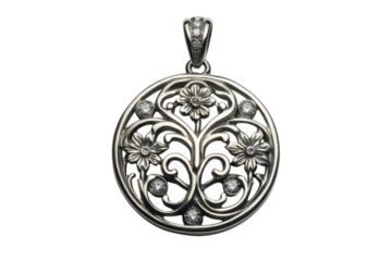 Elegant silver pendant featuring intricate floral design and sparkling gemstones