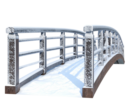 Old stone bridge with wooden railings on transparent background