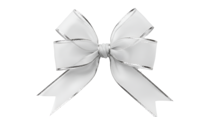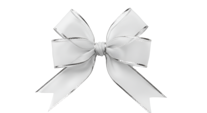 Elegant white and silver ribbon bow isolated PNG with Transparent Background