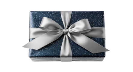 Elegant silver ribbon bow decoration design element gift present celebration decoration isolated on transparent background