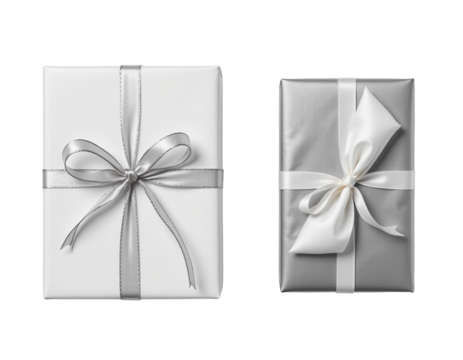 Elegant christmas present with silver bow and transparent background