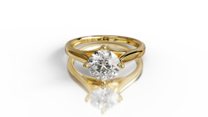 3D render of a gold solitaire ring with a natural diamond, featuring an elegant and luxurious design. Perfect for jewelry, engagement, wedding, or fashion. Realistic details with professional lighting
