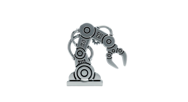 Robotic Arm: A detailed, close-up shot of a sleek, silver robotic arm against a bright background, showcasing its precision, automation capabilities, and industrial design.