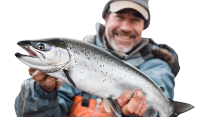 Cheerful Fisherman in Alaska Displaying Fresh Silver Salmon Catch