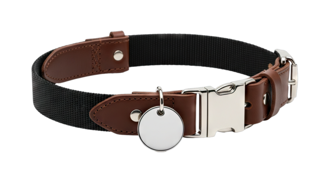 Stylish Brown and Black Leather Dog Collar with Silver Tag.