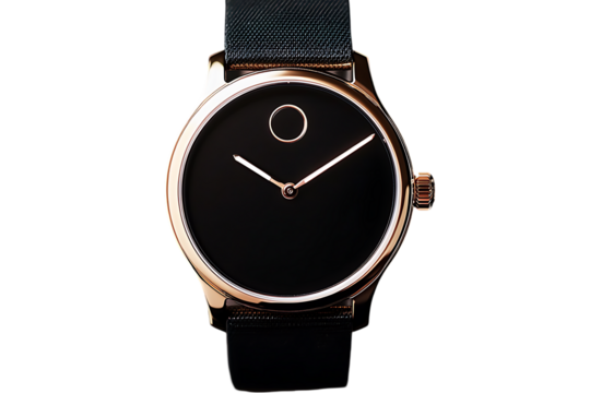 Angled Side View of Leather-Strap Wristwatch, Showing Strap Texture and Watch Depth, isolated on transparent background.