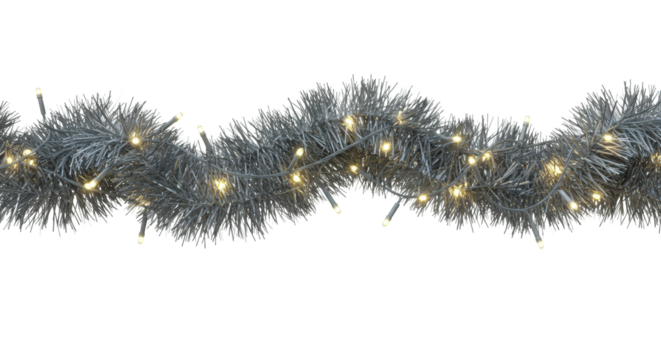 silver tinsel strands isolated on a transparent background.