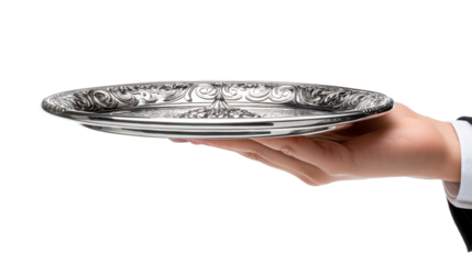 Elegant silver tray held by a server in formal attire