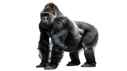 A powerful silverback gorilla standing on all fours, isolated on transparent background, showcasing its immense strength and imposing presence