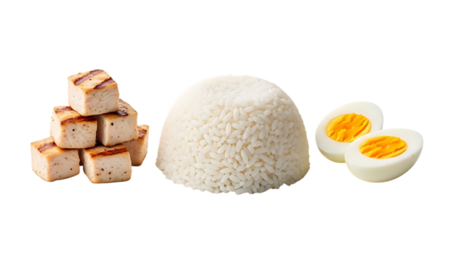 Isolated image of whole and sliced boiled eggs, a healthy food rich in protein, vitamins